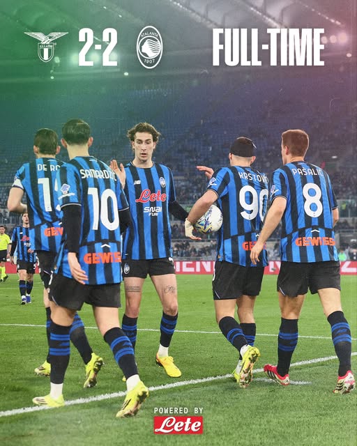 Nella ripresa la Lazio colpisce due volte, prima con Dele-Bashiru al 47′ e poi con Dia (che sfrutta un regalone di Pasalic) all’87’ ma l’Atalanta in entrambi i casi risponde subito prima con Pasalic al 51′ e poi con Musah all’89’. Il 21 o il 22 aprile il ritorno.