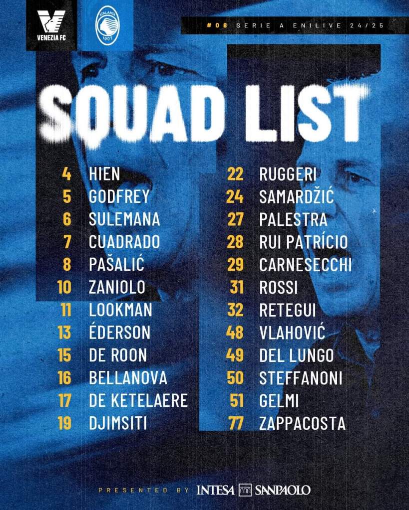 L’Atalanta ritrova Ruggeri e Djimsiti ma perde Kolasinac per influenza. Questo è quanto emerge dall’elenco dei convocati per la sfida di domani a Venezia reso noto dalla società. Assenti ovviamente anche i lungodegenti Scalvini e Scamacca e gli infortunati Kossonou e Brescianini.