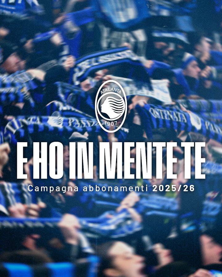 “E ho in mente te“, questo lo slogan che l’Atalanta ha scelto per la campagna abbonamenti della stagione 2025/2026. Alle 17 dell’1 luglio verranno svelati i prezzi. Dal 2 al 10 luglio al via la fase di prelazione, mentre dal 12 al 20 luglio ci sarà la vendita libera.