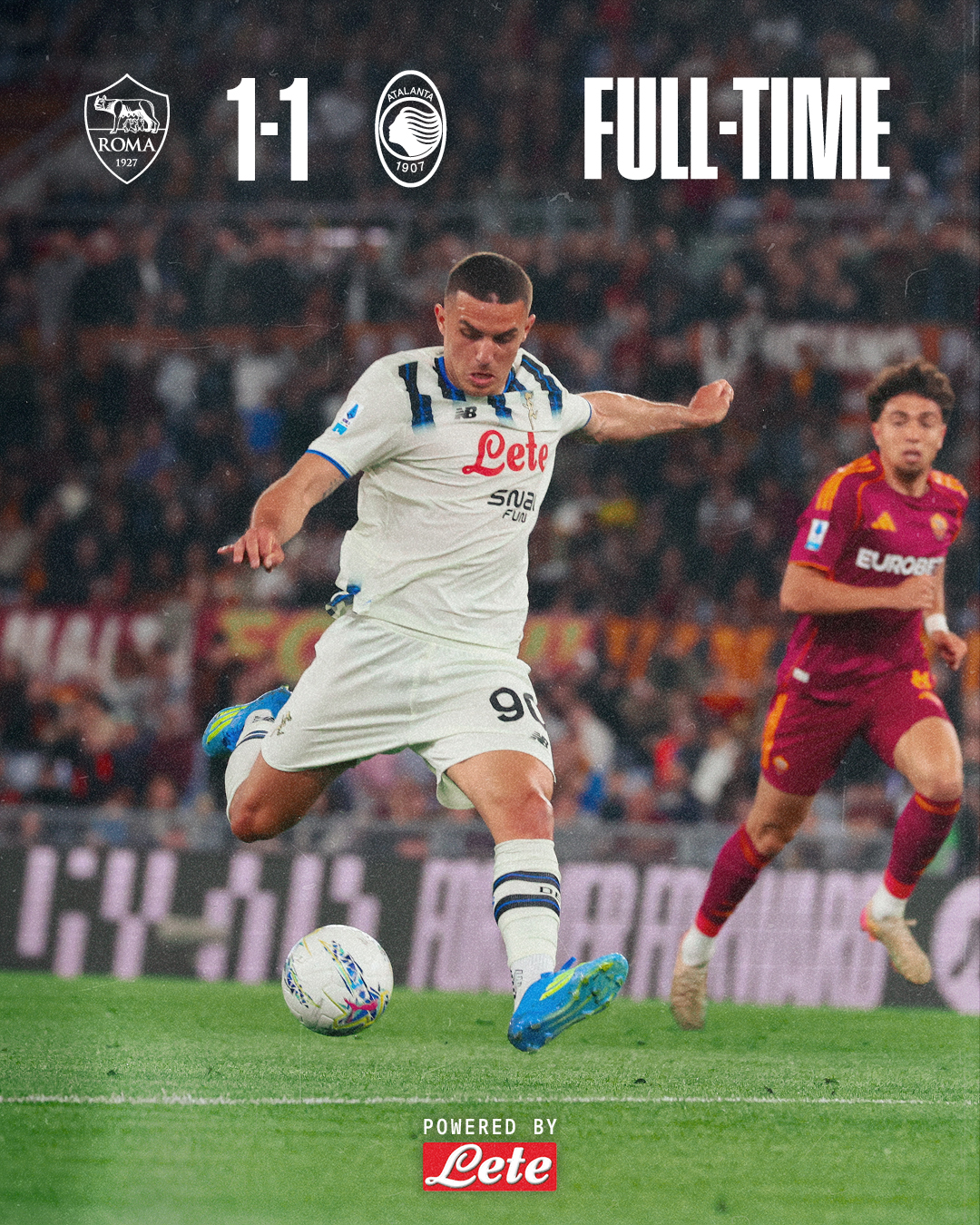 La Roma raggiunge il Como a quota 58 punti al quinto posto, l’Atalanta resta settima a 54 punti.
