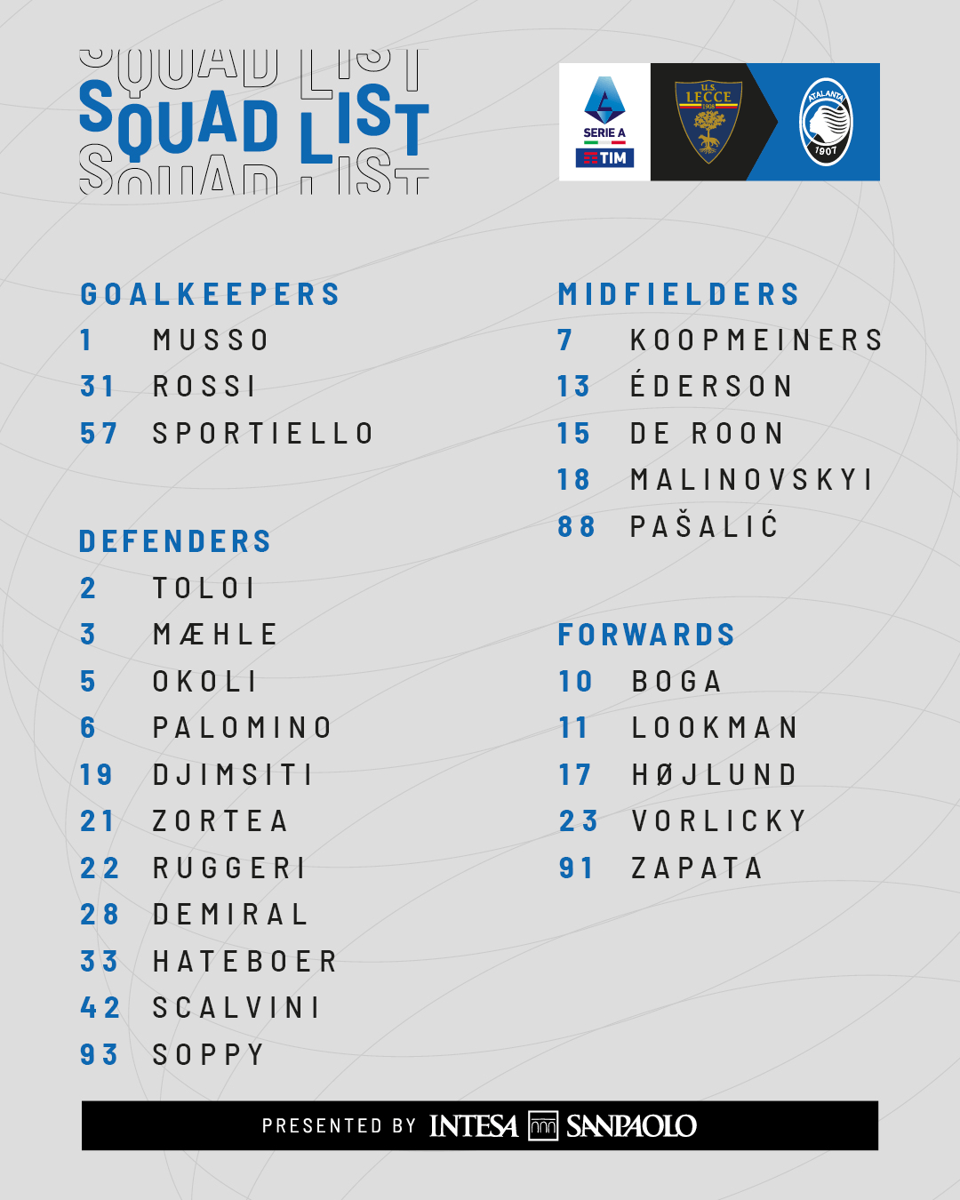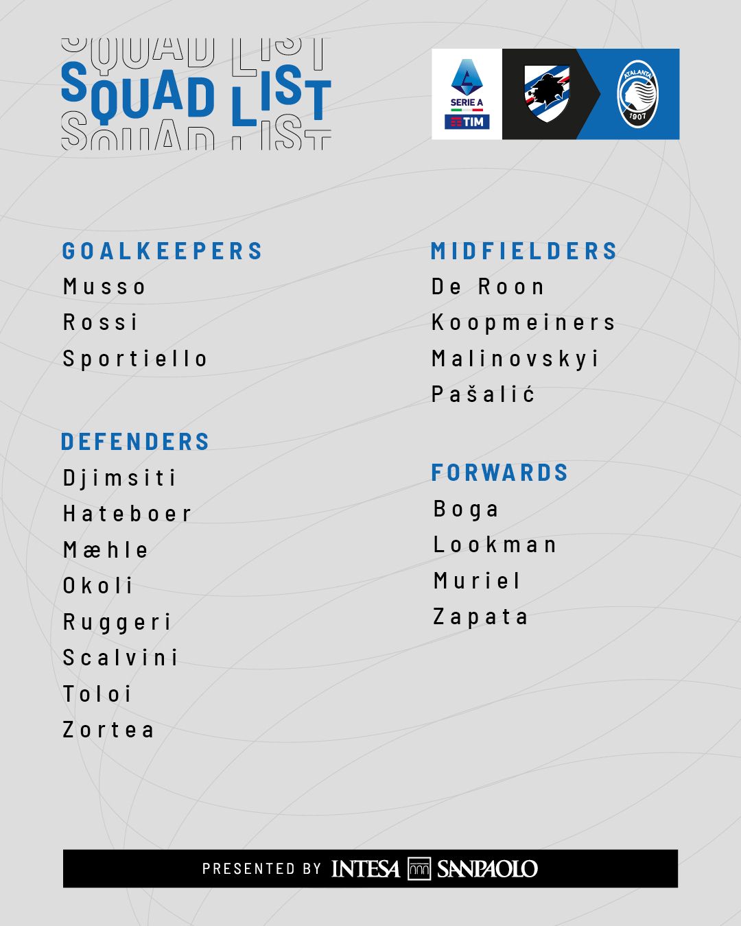 Atalanta, i convocati per il Napoli. Koop c’è, CDK no