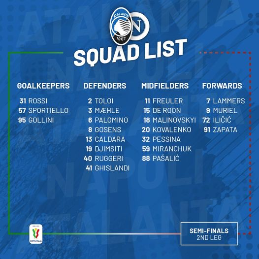 Atalanta, i convocati per il Napoli