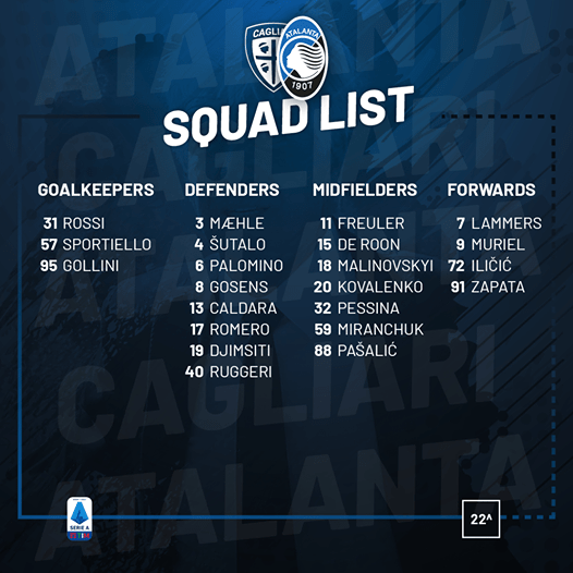 Atalanta, i convocati per il Cagliari
