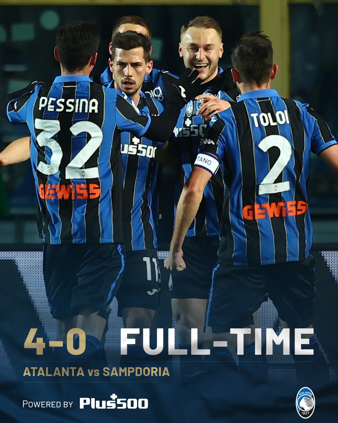 Atalanta-Sampdoria 4-0, il tabellino
