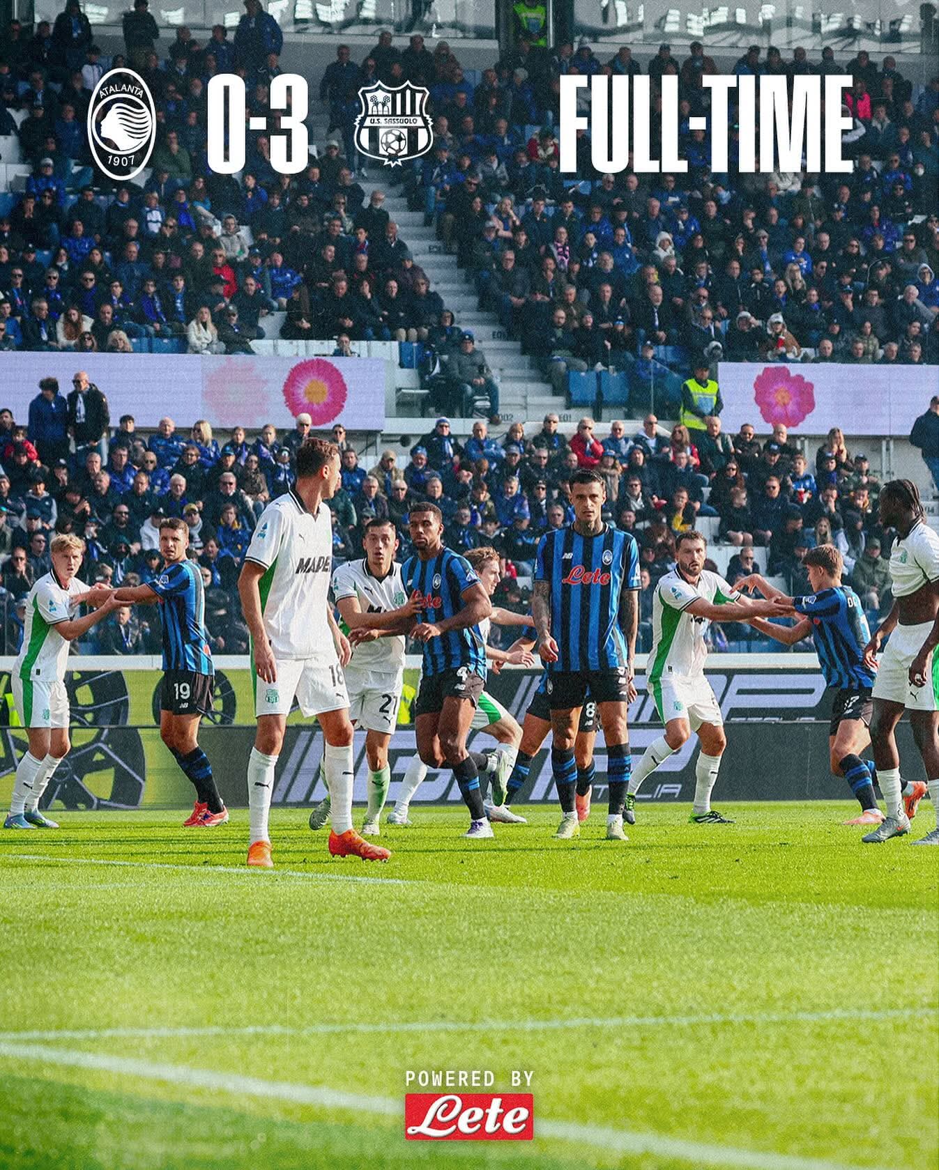 Atalanta, profondo rosso. 3-0 per il Sassuolo a Bergamo